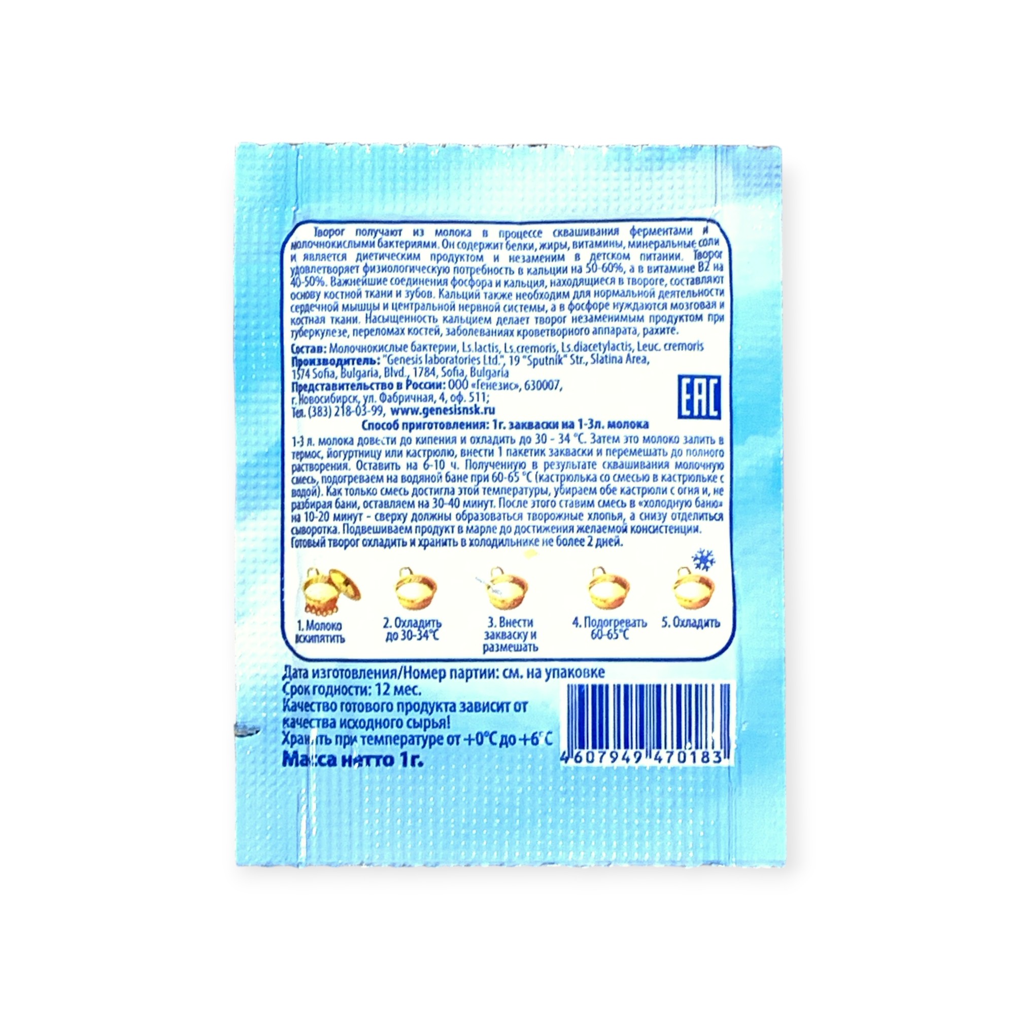 Закваска Творожок Genesis, 1 пакет от 100 руб. с доставкой. Пункт выдачи в Красном Сулине. Интернет магазин по сыроделию. Всё всегда в наличии.